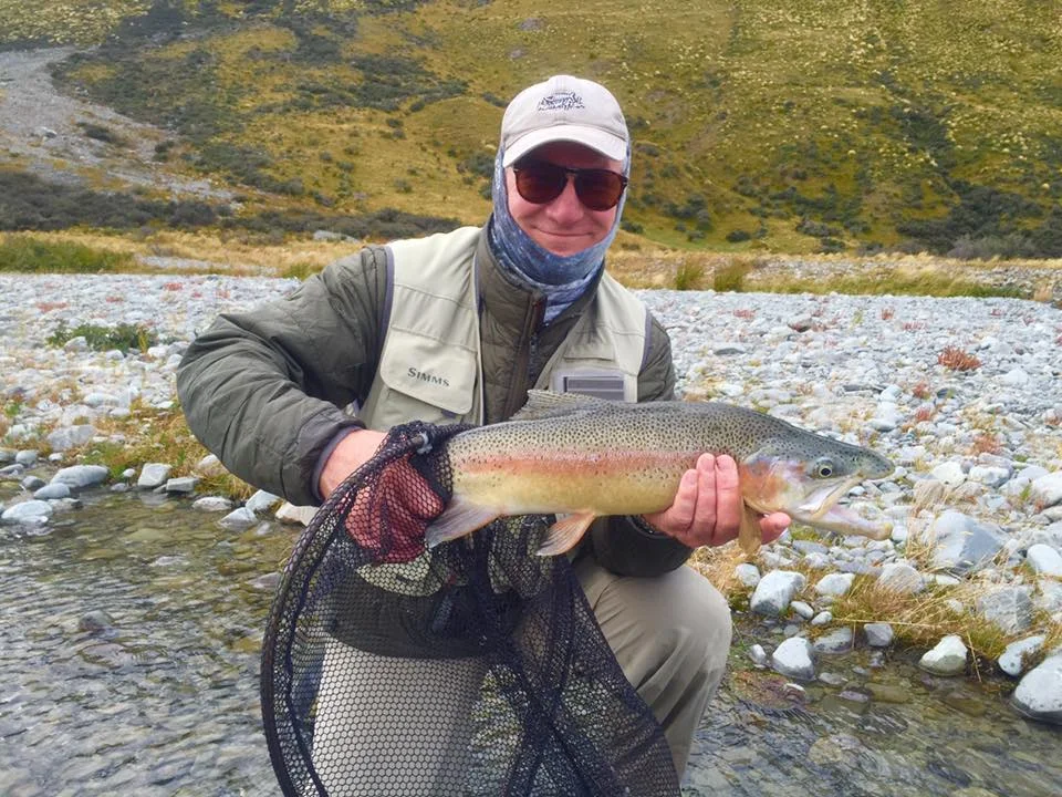 Boom ! A streamer eater for Angus , this fish was hugging a bank along a deep bouldery edge . When fly fishing here in New Zealand you quite often need to change your approach and adapt to the conditions to get results , and you must be prepared to use what ever technique's are required on the day , get out and practice your casting before you arrive here in New Zealand !